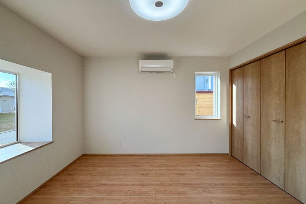 壁一面にある収納スペースを無くし、洗面室側の壁にクローゼットを設けた明るくゆったり過ごせる寝室へと仕上がりました。