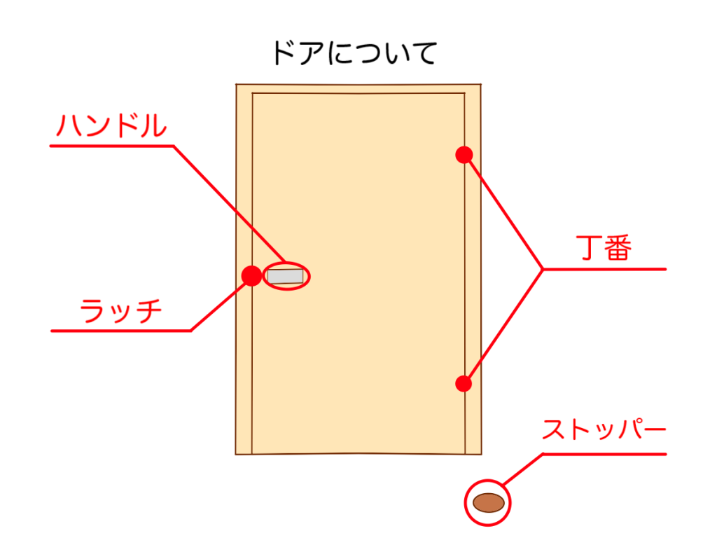 オプションなしの標準仕様の建具で変更する部分は、ラッチとストッパーになります。